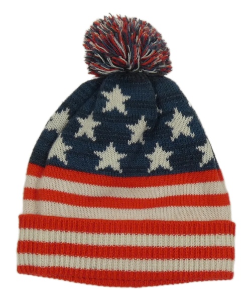 Bílo-červeno-modrá čepice s hvězdami a pruhy a bambulí