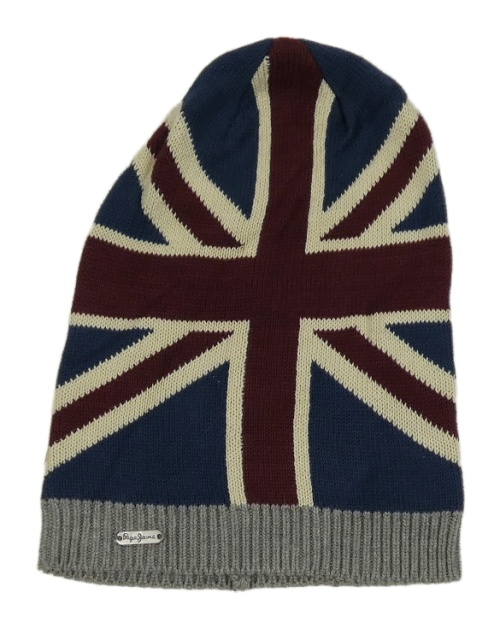 Tmavomodro-vínovo-šedá beanie čepice s vlajkou Pepe Jeans