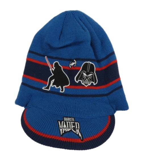 Modro-červená pruhovaná pletená čepice se StarWars a kšiltem