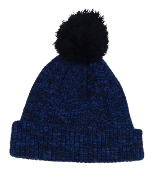 Tmavomodro-černá melírovaná pletená podšitá čepice s bambulí