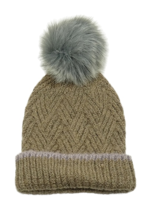 Béžová vzorovaná pletená čepice s bambulí
