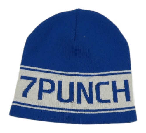 Modro-bílá čepice s nápisem