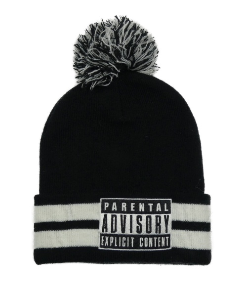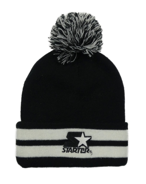 Černá čepice s nášivkou a bambulí
