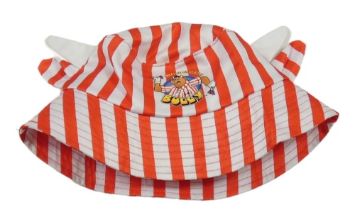 Červeno-bílý pruhovaný klobouk s obrázkem