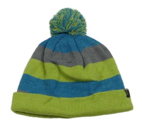 Zeleno-modro-šedá pruhovaná pletená čepice s bambulí