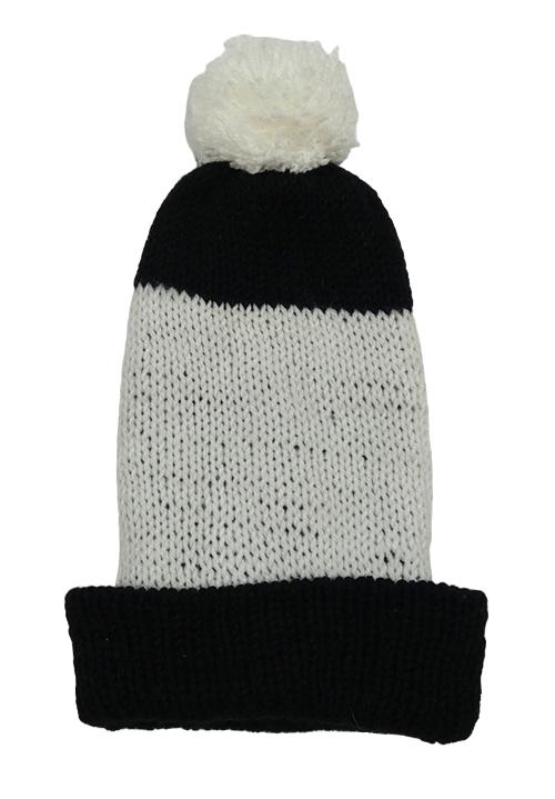Černo-bílá pletená čepice s bambulí