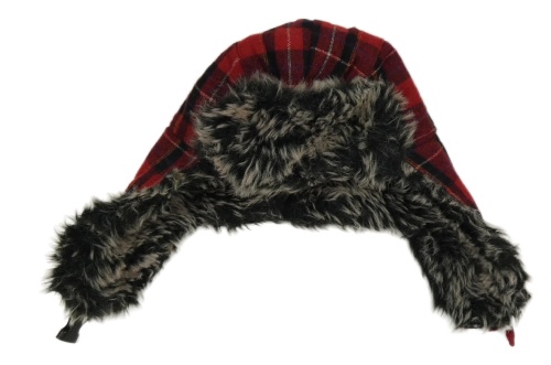 Červeno-černá kostkovaná vlněná beranice s kožešinou Burton