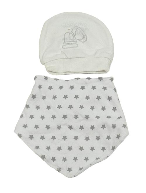 2set - Bílá čepice s bagrem + bílý slinták s hvězdami