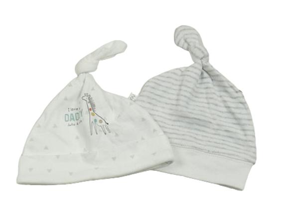 2x bílá bavlněná čepice - s žirafou + šedo-bílá pruhovaná