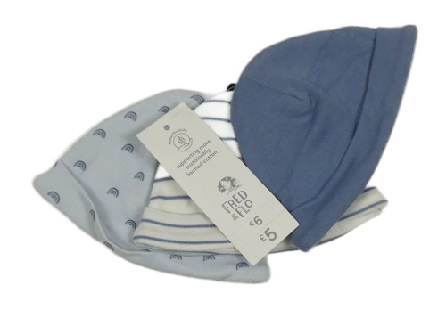 Nové - 3x bavlněná čepice - světlemodrá s duhami + bílo-modrá pruhovaná + modrá F&F