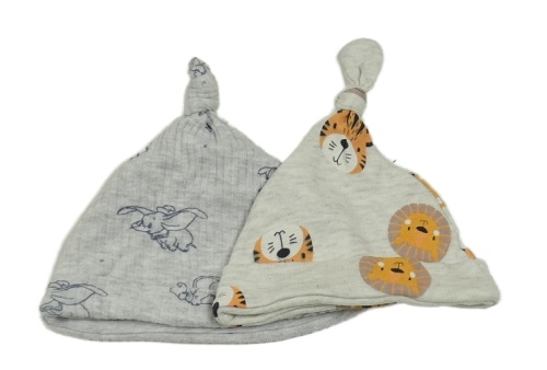 2x bavlněná čepice - šedá melírovaná žebrovaná s Dumbem + světlešedá melírovaná se zvířaty