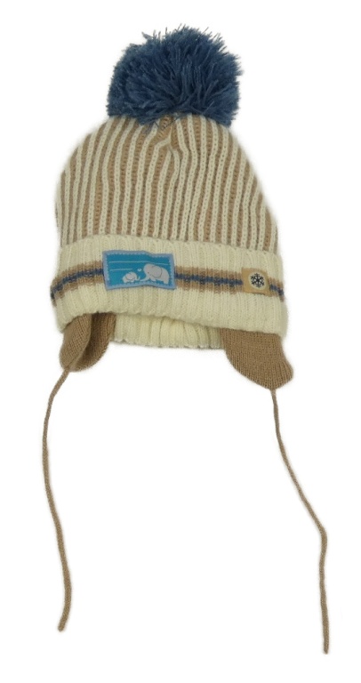 Bílo-béžová pruhovaná čepice s bambulí Bubble Gum