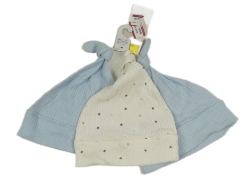 Nové - 3x bavlněná čepice - bílá puntíkatá + 2x světlemodrá M&S