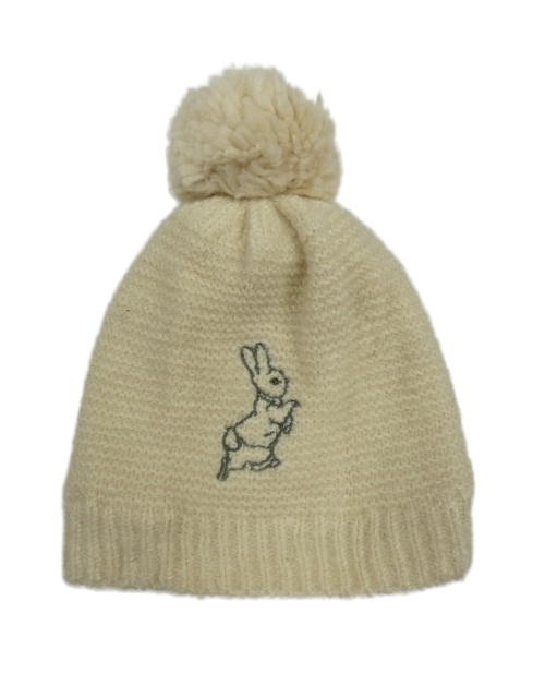 Smetanová pletená podšitá čepice s králíkem a bambulí