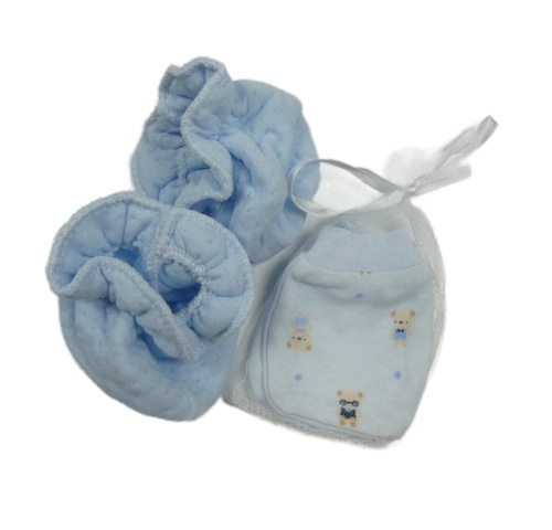 Nové - 2Set - Světlemodré rukavice s medvídky + bačkory
