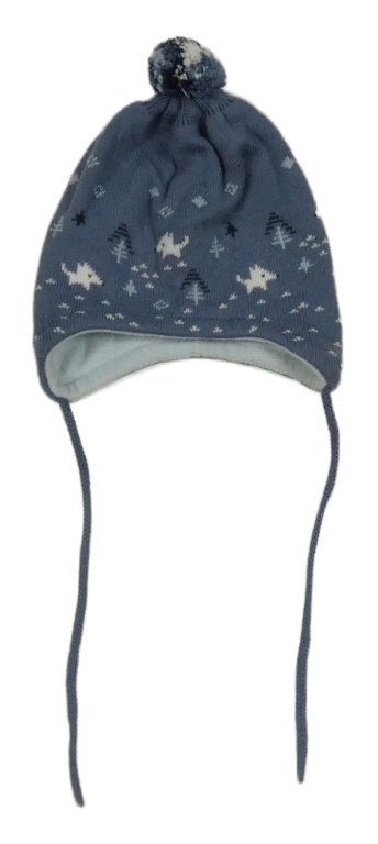 Modrá pletená vzorovaná podšitá čepice s bambulí