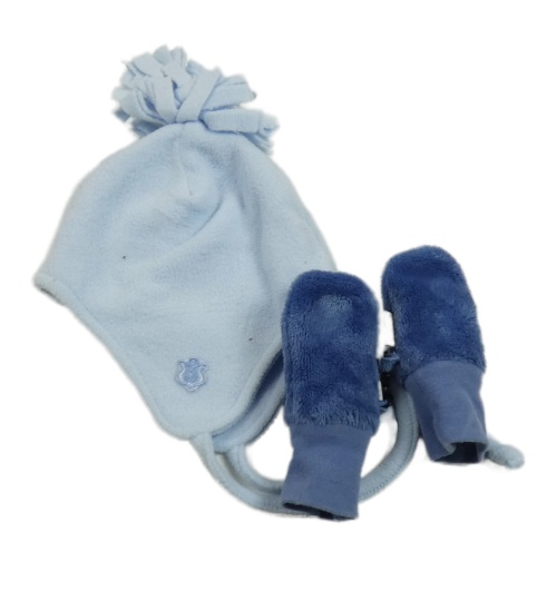 2set - Světlemodrá fleecová čepice + modré plyšové rukavice Manai
