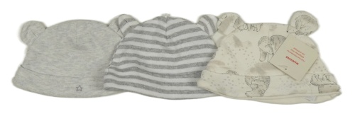 3x bavlněná čepice - smetanová s medvědy + pruhovaná + šedá