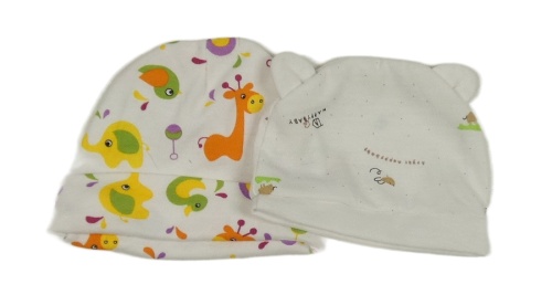 2x bavlněná čepice bílá se zvířátky+ bílá s obrázky