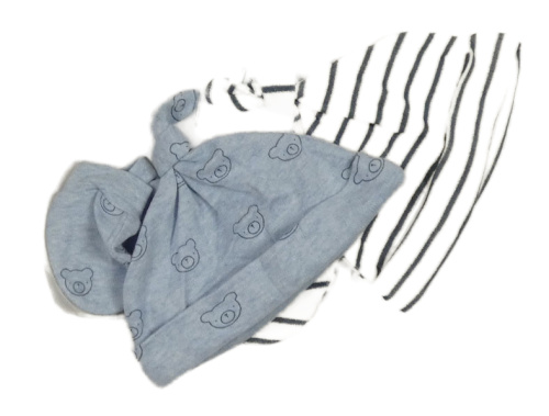 Nové - 4set- 2x čepice modrá s medvědy+ pruhovaná+ 2x rukavice George