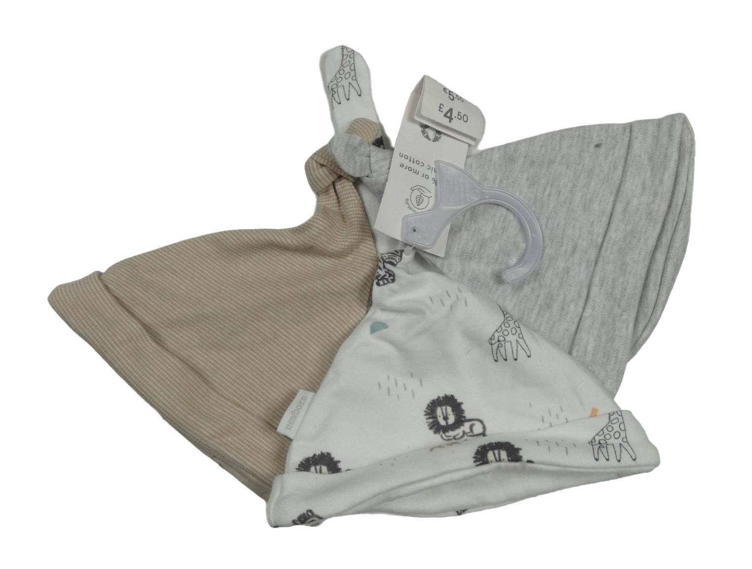 Nové - 3x bavlněná čepice - šedá + béžová + bílá se zvířaty F&F