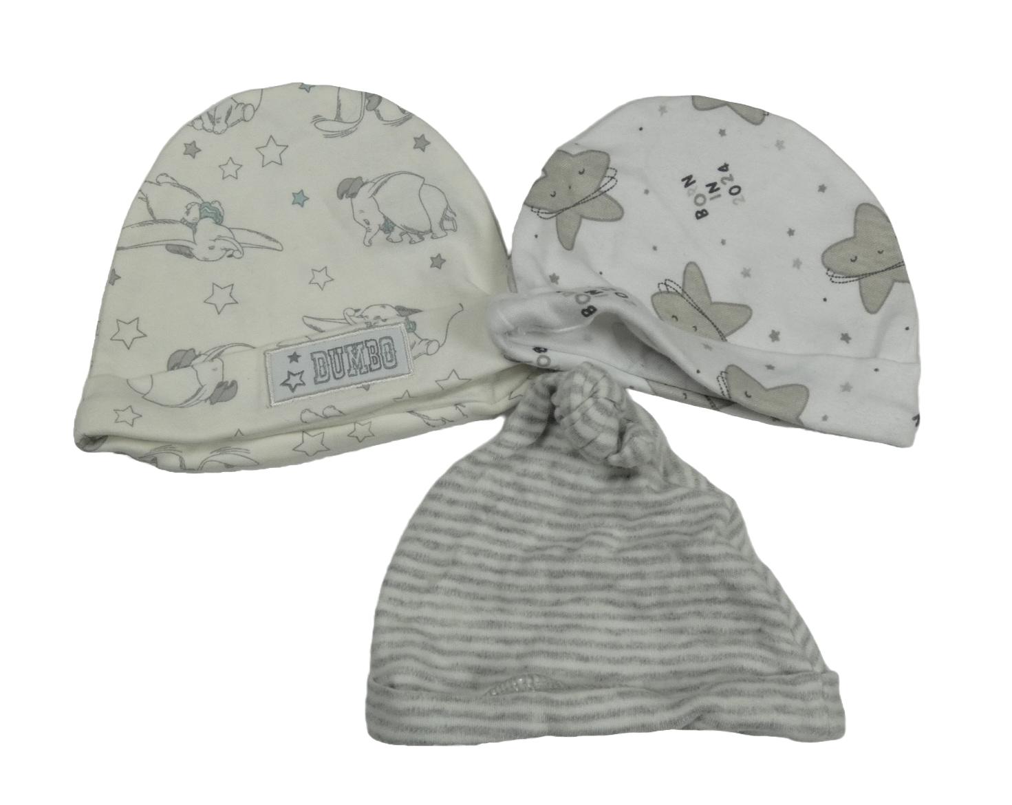 3x čepice - bílá s hvězdami + bílá s Dumbem + bílo-šedá pruhovaná