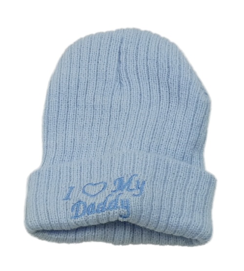 Světlemodrá žebrovaná pletená čepice s nápisem