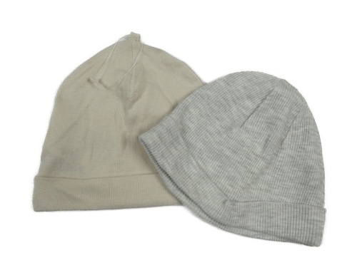 2x čepice - šedá žebrovaná + světlebéžová
