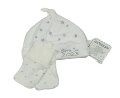 2set - Bílá bavlněná čepice s hvězdami + smetanové rukavičky s hvězdami