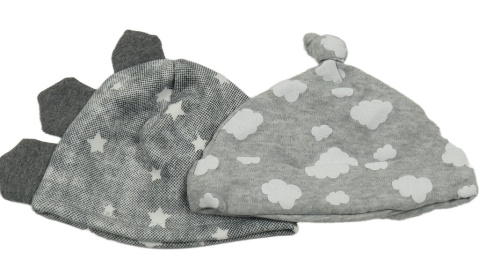2x čepice šedá s mráčky+ černá melírovaná s hvězdičkami