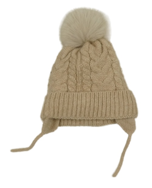 Světlebéžová vzorovaná pletená podšitá čepice s bambulí