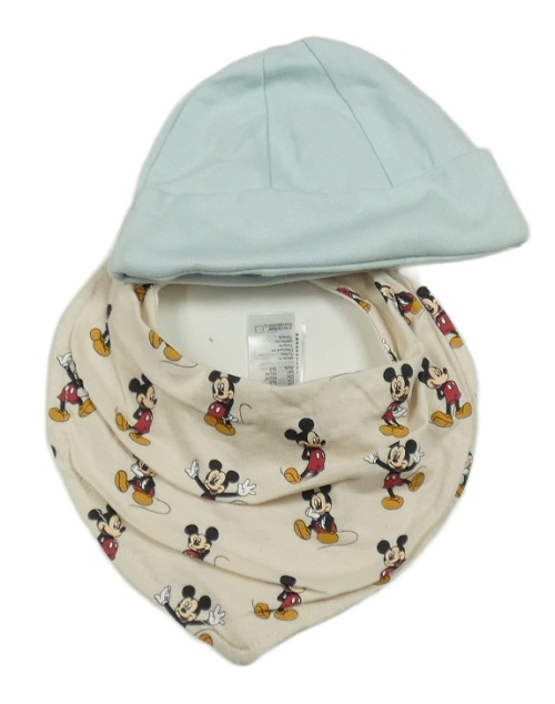 2set - Světlemodrá čepice s mývalem + béžový slinták s Mickeym