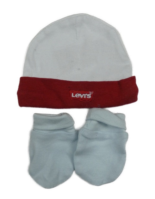 2set- bílo-červená čepice s logem Levis+ světlemodré rukavice
