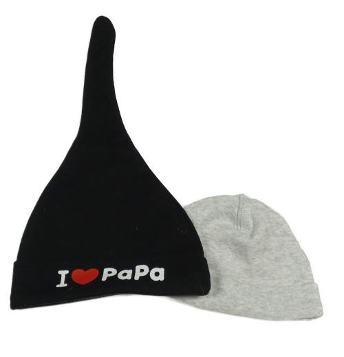 2x bavlněná čepice - černá s nápisem a srdcem + šedá melírovaná