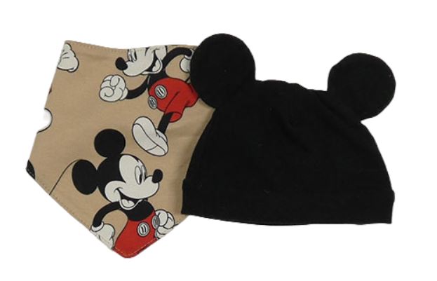 2Set - Černá čepice s oušky + béžový šátek/slinták s Mickey Next