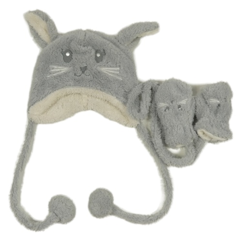 Nové - 2set - Šedo-bílá chlupatá čepice - rukavice - králíček