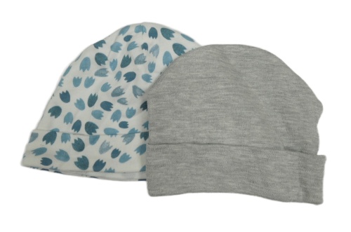 2set - 2x čepice - šedá + bílo-modrá vzorovaná