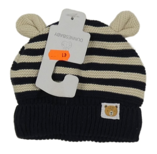 Nové - Tmaomodro-smetanová pruhovaná pletená podšitá čepice Dunnes Stores