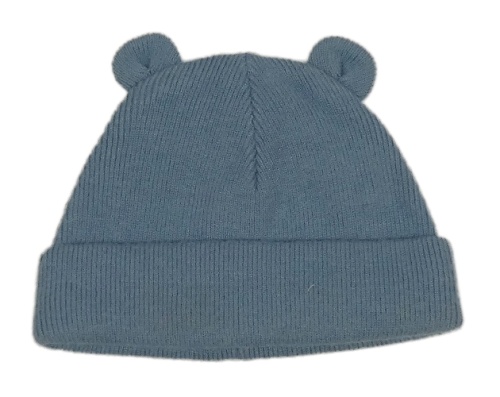 Modrošedá pletená podšitá čepice s oušky