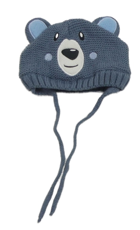 Tmavomodrá pletená podšitá čepice s ušima - medvěd