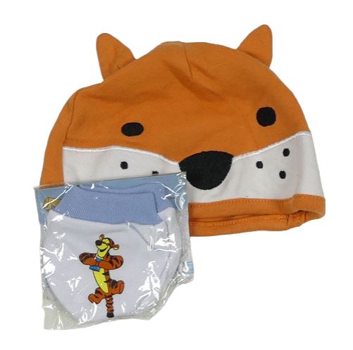 2 set - Oranžová čepice - liška + bílo-modré rukavice s tygrem