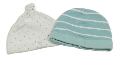 2set - 2x čepice - bílá s hvězdami + modro-bílá pruhovaná