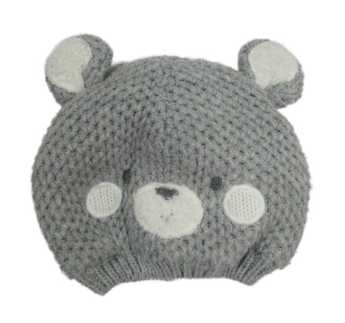 Šedá pletená podšitá čepice s medvídkem Nutmeg