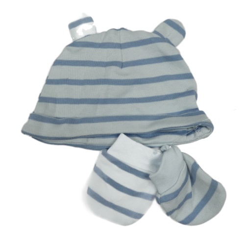2set - Světlemodrá pruhovaná čepice + rukavice