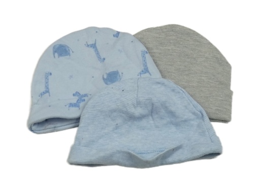 3x bavlněná čepice modrá se zebrami+ šedá+ pruhovaná