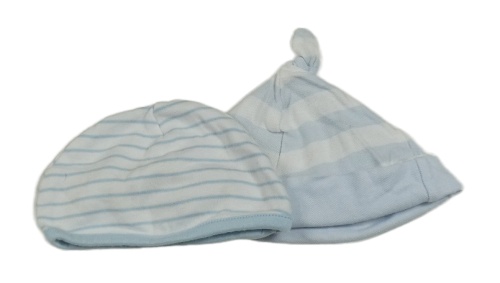 2x - Bílo-světlemodrá pruhovaná čepice little nutmeg