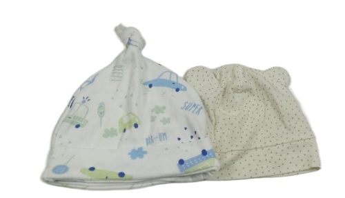 2x bavlněná čepice bílá a auty+ smetanová vzorovaná