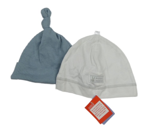 Nové - 2x - Čepice - Modrošedá žebrovaná chick pea, bílá s nášivkou M&S