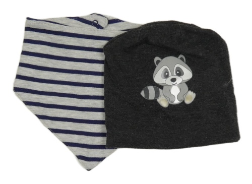 2set - Tmavošedá čepice s mývalem + šedý pruhovaný slinták