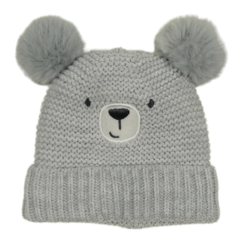 Šedá pletená čepice s medvědem a bambulemi F&F